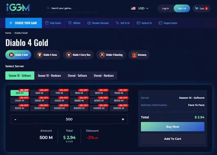 Since the initial release of Diablo 4, they have been selling related game products and continuously expanding their offerings. Currently, IGGM has a stable supply of Diablo 4 gold, items, carry runs, and boosting services for sale, suitable for both softcore and hardcore servers, essentially covering all the needs of current players.